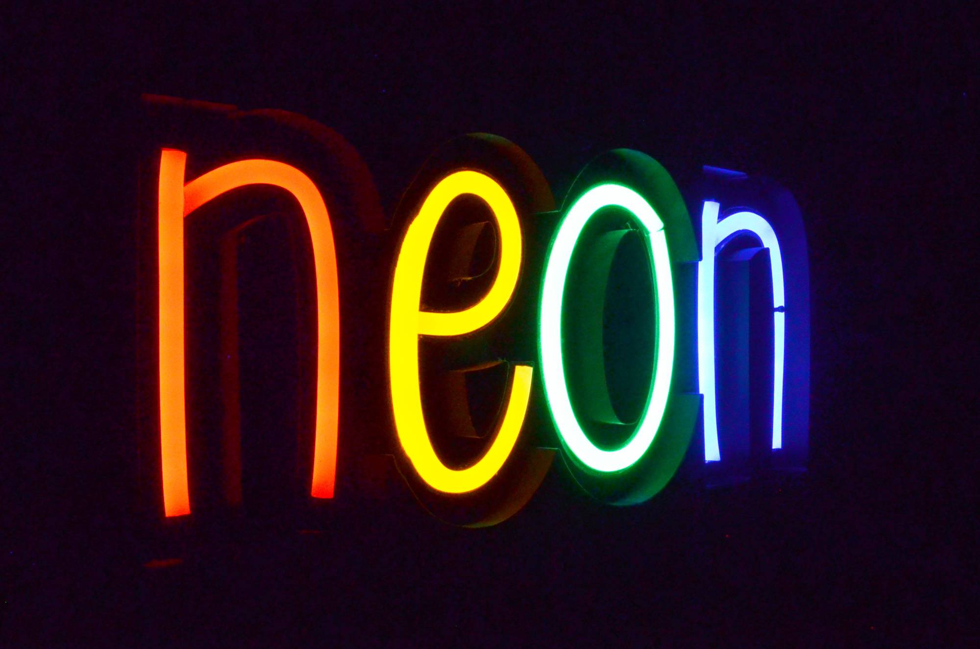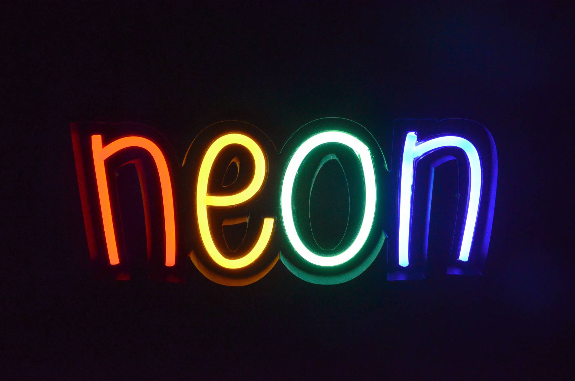 - jednokolorowe taśmy neon flex - różne dla każdej litery